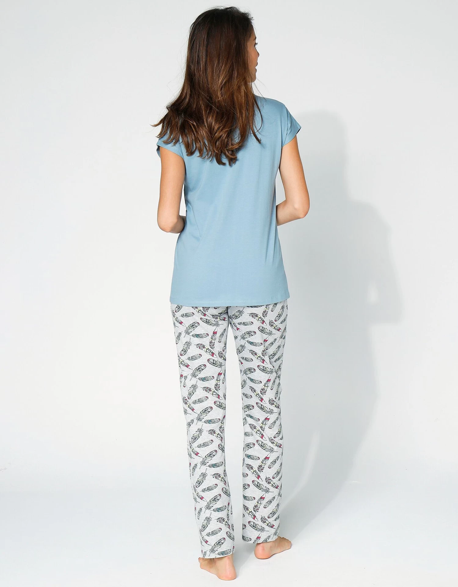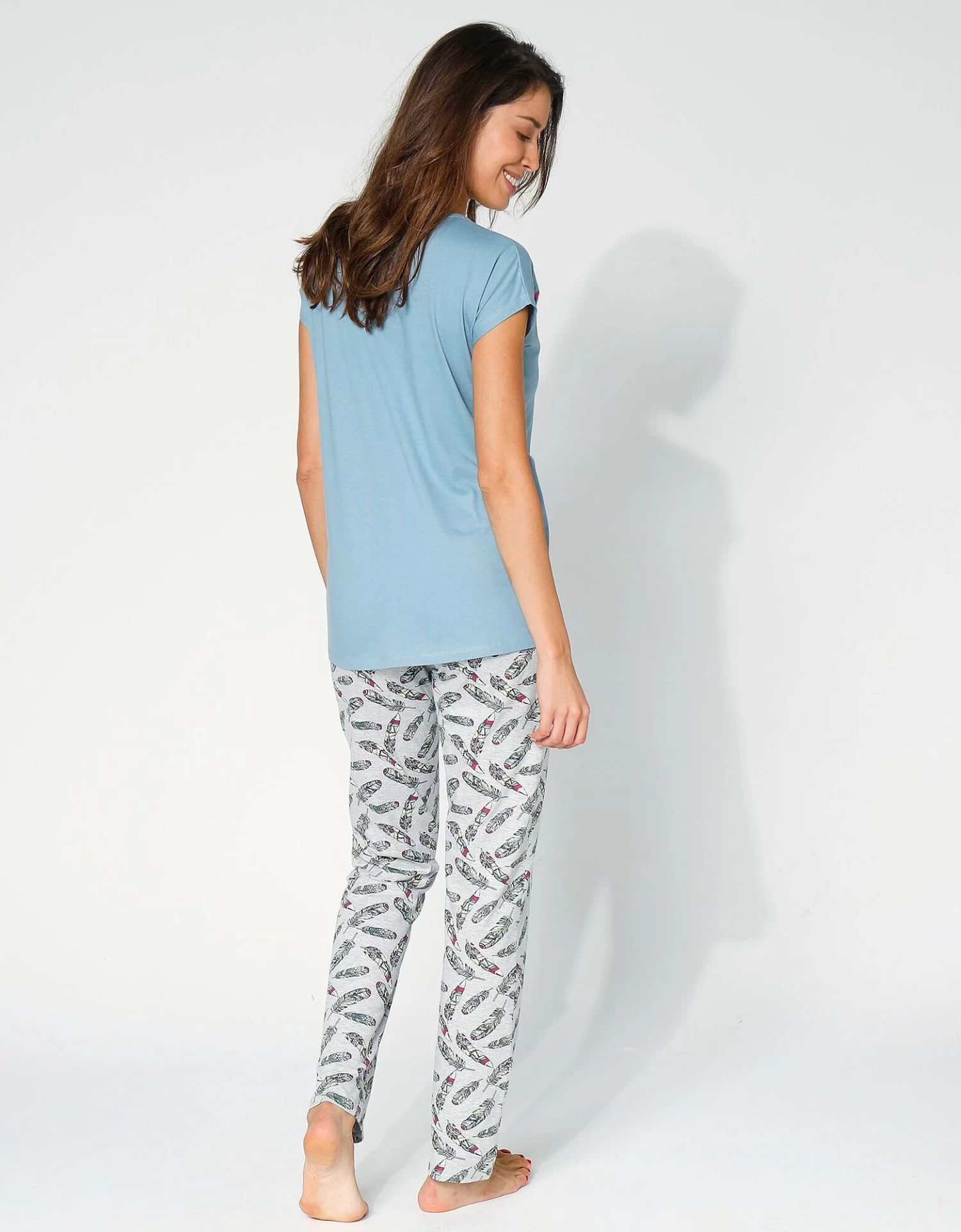 – Maille jersey gris chiné, 93% coton, 7% polyester, pour le pantalon