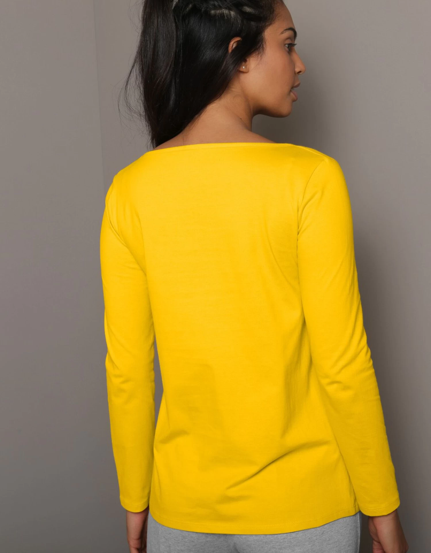 – Décolleté V féminin légèrement arrondi